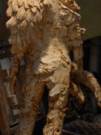 片方の翼をあげる天使 2002 年 素材:石膏 鉄