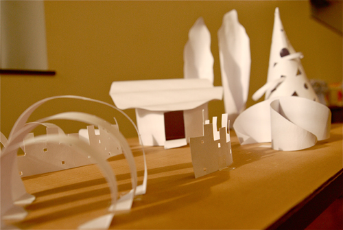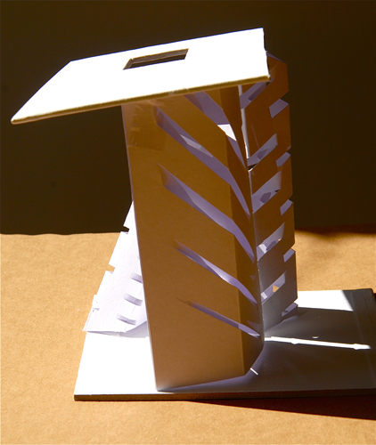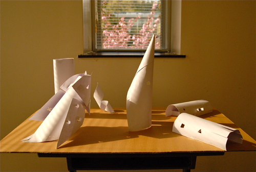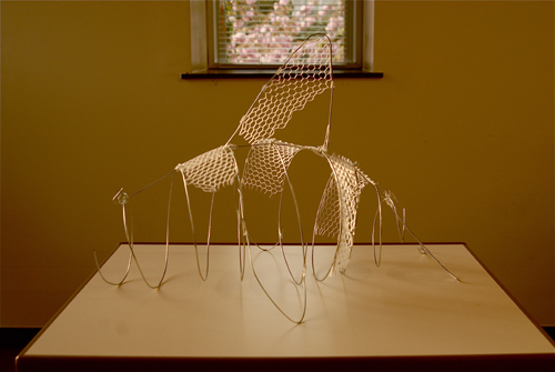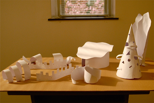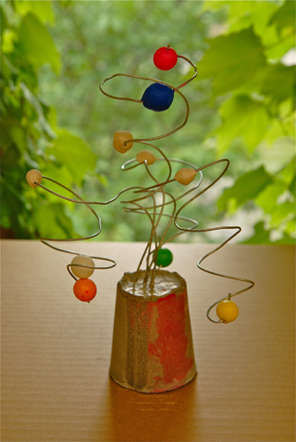立体造形の発想、表現(臨場感覚を伴った3次元空間の創造)の基礎的養成を目的とする。紙、和紙、竹、木、針金、粘土などの各種素材による立体製作の実習を行い。目、手、物を通して、体験し、その基礎的な考え方(理論)を楽しく学ぶ。